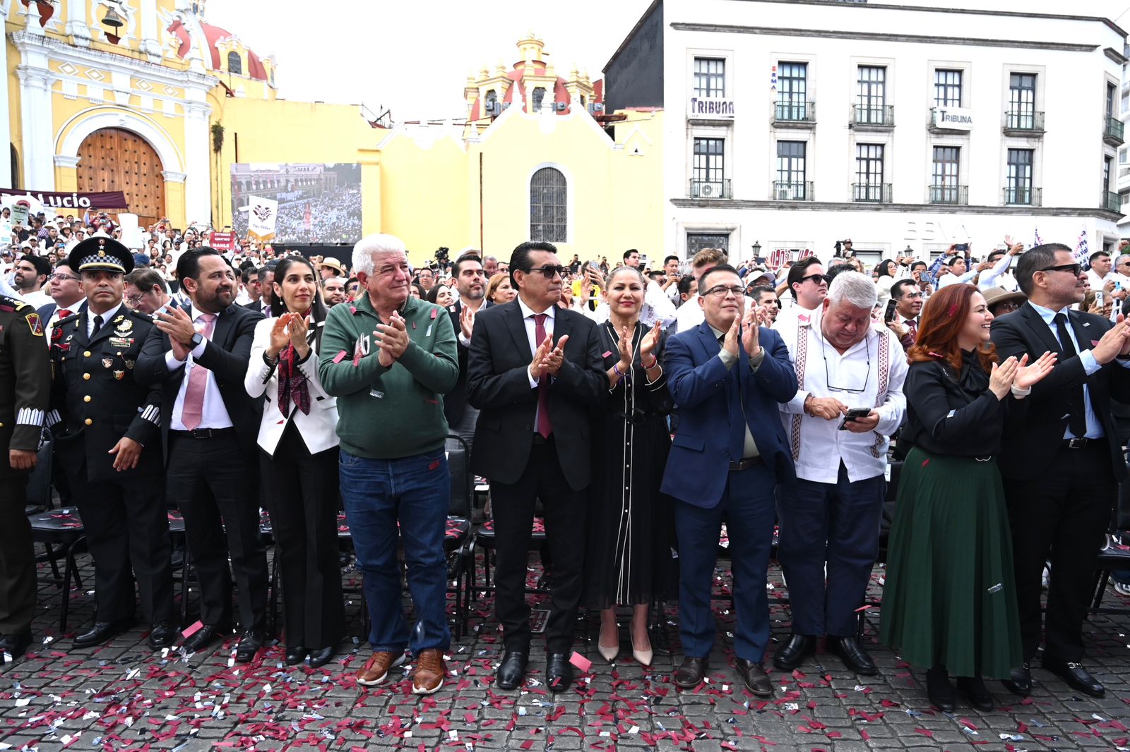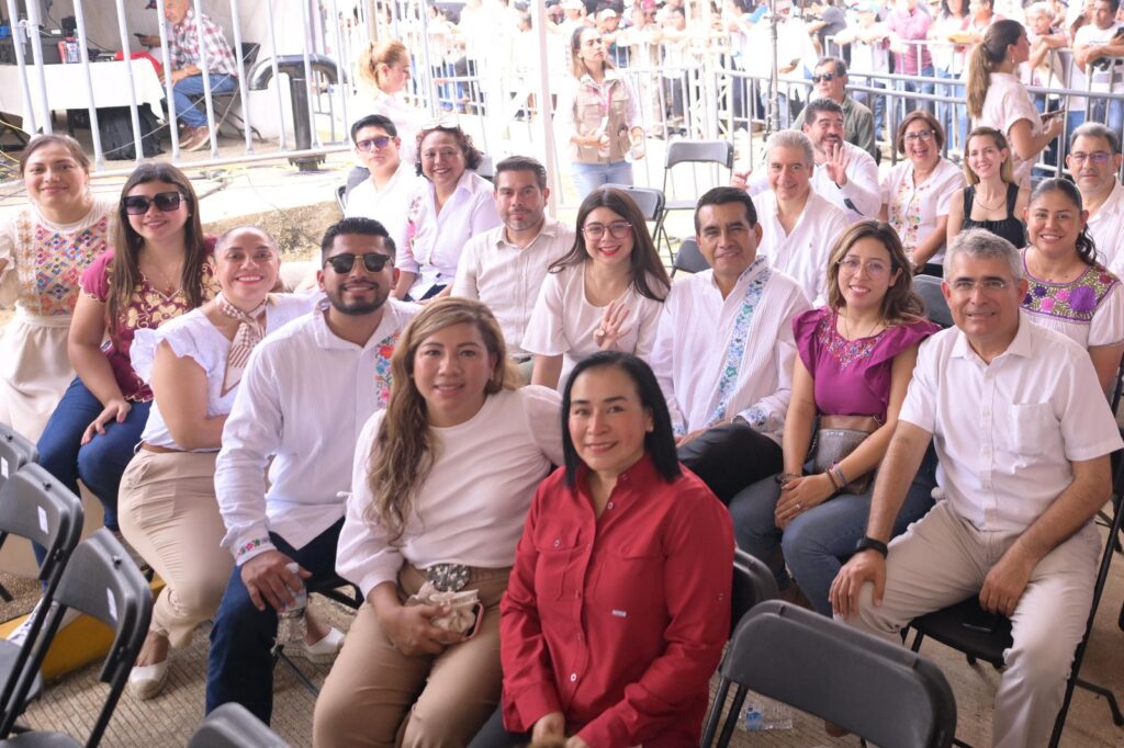 Zaragoza, Ver, 06 de julio de 2025.- Legisladoras y legisladores locales veracruzanos acompañaron a la gobernadora de Veracruz, Rocío Nahle García, a la Asamblea del Fondo de Aportaciones para la Infraestructura Social de Pueblos Indígenas y Afromexicanos (FAISPIAM) en el municipio de Zaragoza, Veracruz, encabezada por la presidenta de México, Claudia Sheinbaum Pardo.